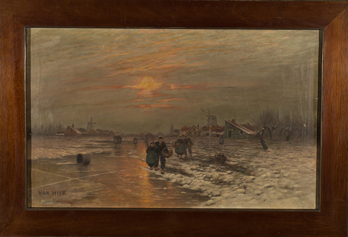 Auguste Van Hier war ein niederländischer Maler des späten 19. und frühen 20. Jahrhunderts, bekannt für seine stimmungsvollen Landschafts- und Hafenbilder. Seine Werke zeigen oft Fischerboote, Küstenansichten und Szenen bei Dämmerung oder Mondschein. Van Hier arbeitete hauptsächlich in Öl auf Leinwand oder Holz und signierte seine Werke meist mit „Van Hier“.